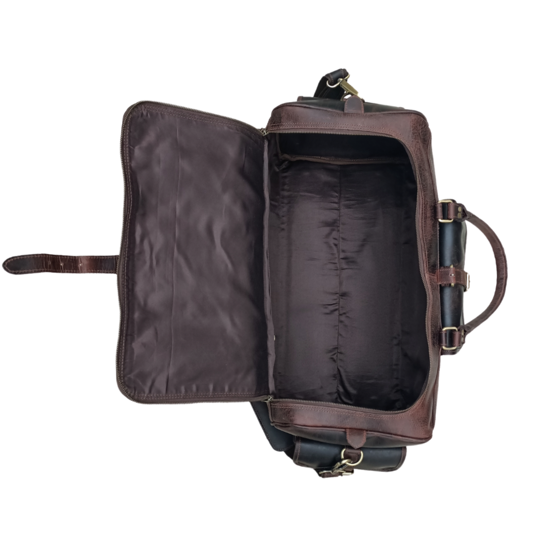 • This leather weekend bag comes with a U shape opening of the main compartment to access all corners of the bag.